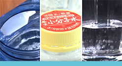 冷開水(大分子水)經太陽光能照射30分鐘後,再經陶磁共振轉換成太陽光能小分子水